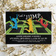 Convocando todos os pais que amam planejar festas! Faça a próxima celebração de aniversário do seu filho ser ainda mais especial com convites de parque de trampolim! Com um vibrante fundo preto, uma colorida quadra de trampolim com crianças pulando e voando pelo ar e um modelo de texto simples, esses convites únicos farão sua festa se destacar da multidão.