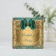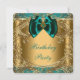 Convite de aniversário em jade e dourado com redemoinhos dourados lindos modelo de convite. Este convite de aniversário em jade azul-esverdeado e dourado é facilmente personalizado para o seu evento, basta adicionar os detalhes do evento, estilo de letra, tamanho e cor da fonte e texto. Por favor, observe que todos os adesivos, cartões e desenhos de convite que você encontrará no Zazzle são gráficos impressos sem joias reais, laços, relevos, dourados ou peças ou partes adicionadas.