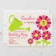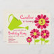 Um convite de aniversário que caracteriza uma ilustração de uma lata molhando verde e de quatro cor-de-rosa e margaridas marrons. Personalize o texto com detalhes de sua ocasião.