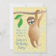 Desenho adorável de uma felpudo de preguiça de bebê só de sair. Perfeito para o aniversário da criança. Fácil de personalizar textos e um local para adicionar a foto do seu filho.