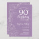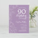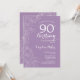 convite de aniversário lavanda floral roxo 90 com sua foto na parte traseira da placa. Design minimalista moderno com desenhos botânicos em destaque, folha de ouro falsa e letra de script de tipografia. Simples trendy convida cartão perfeito para uma festa de na moda. Pode ser personalizado para qualquer idade. Impressos convites Zazzle ou modelo de impressão digital instantânea para download.