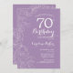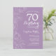 Convite de aniversário lavanda Floral Roxo 70. Design minimalista moderno com desenhos botânicos em destaque e letra de script de tipografia. Simples trendy convida cartão perfeito para uma festa de na moda. Pode ser personalizado para qualquer idade. Impressos convites Zazzle ou modelo de impressão digital instantânea para download.