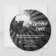 Um convite em forma de círculo redondo com um brilhante espelho brilhante, divertido e festivo, com uma bola cintilante de prata com raios de fundo luminosos e luminosos num esquema de cores a preto e branco. Perfeito para sua dança especial, disco, festa de aniversário de qualquer ano! Legal para uma festa de casa ou uma festa de dança no clube noturno.