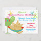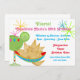 Um convite em verde limão, rosa quente e azul-turquesa. Marguerita e batatas fritas no canto inferior esquerdo. Estrelas brilhantes feitas de linhas de interseção e texto personalizável.