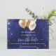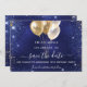 Uma tendência Salve a data para uma festa de aniversário 18 (ou qualquer idade). Um fundo azul marinho incolor. Decorados com balões azuis e falsos de ouro e ouro. O texto: Salvar a Data é gravado com um script de estilo com letra de tendência grande.