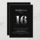 Convide seus amigos e entes queridos para a sua comemoração de 16 anos com este na moda minimalista convite de aniversário preto e prateado 16.
