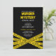 Convite de festas Mistério de Assassinato com um design moderno com fitas de cena de crime na linha da polícia amarela. Para a festa de aniversário perfeita da polícia, noite de jogo detetive ou um evento na sala de fuga do crime. Produtos personalizáveis para uma celebração memorável. Arte original de PUPSIKU STUDIO. Produtos exclusivos 100%.
