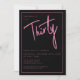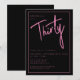 Convite de aniversário de 30 anos moderno em preto com tipografia/script rosa. Itens e festa combinando também disponíveis. Por favor, use o botão de mensagem abaixo para obter ajuda com personalizações adicionais e pedidos especiais. © Zoe Chapman Design