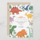 Prepare-se para estompar, chomp e rugir com este vibrante convite de aniversário para dinossauros! Apresentando um arranjo lúdico de dinos desenhados à mão em todas as cores do arco-íris—mais folhas de selva luxuosas num fundo branco moderno—este convite é perfeito para o grande dia do seu paleontólogo. Excelente para crianças que amam dino, este design traz uma reviravolta educacional divertida com favoritos encantadoramente ilustrados como o T-Rex, o Stegosaurus, o Tricerátopo, e muito mais. Quer você esteja jogando uma brecha da selva Jurássica ou uma festa pré-histórica do parque, este convite define a cena para um bom tempo!
