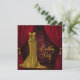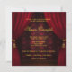 Convite de aniversário elegante em vermelho rubi e dourado no estilo Art Déco. Este lindo convite de aniversário feminino em vermelho e dourado apresenta um vestido de gala dourado e cortinas com borlas reais em vermelho e dourado. Você pode personalizar facilmente o convite de aniversário em vermelho rubi e dourado simplesmente escolhendo o botão "Personalizar!" para começar a adicionar os detalhes do seu evento, estilo de letra, tamanho e cor da letra e texto. Por favor, note que todos os adesivos, cartões e desenhos de convites que você encontrará na Zazzle são gráficos impressos sem joias, laços, relevos, rebaixos ou peças ou partes adicionais.