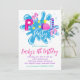 Letras coloridas em um fundo branco tornam este convite de festa atraente e divertido! Adicione os detalhes da sua festa usando o formulário de modelo. Texto adicional pode ser adicionado na parte de trás, se necessário, usando o recurso Personalizar.