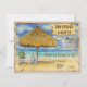Este convite de aniversário de dois lados "Destination Paradise" é feito a partir de bela arte colorida à mão por Audrey Jeanne Roberts. Ele apresenta uma Palappa de Folha de Grama detalhada com cadeiras adirondak e toalhas de praia na praia com um oceano tropical lambendo a areia. Há um carimbo postal com a data e localização de destino em uma borda envelhecida e desgastada. A paleta de cores é azul aqua, bege, creme e marrom. Também disponível com um fundo verde musgo suave, verde mais escuro e um fundo azul aqua mais escuro. Este cartão de Save the Date pode ser facilmente personalizado. VOCÊ TAMBÉM PODE GOSTAR: CONVITES DE CASAMENTO: