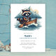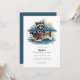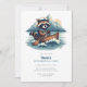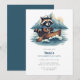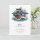 Torne o aniversário do seu filho mais especial com este adorável convite de aniversário náutico! Apresentando um guaxinim fofo em uma roupa de marinheiro remando um barco de madeira através de um oceano calmo com montanhas majestosas ao fundo, este design de aquarela moderno é perfeito para uma celebração de pesca, náutica ou temática da natureza. Personalize este vibrante e ecológico convite digital para criar um evento memorável para o seu pequeno!