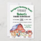 Convite de festa de aniversário com cena de celeiro fofa, edite o texto você mesmo ao encomendar.