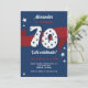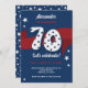 🎂 se juntar a nós para celebrar um 70 patriótico! 🎈 Honrar um veterano ou militar com este convite de aniversário vermelho, branco e de temas azuis. A design de captura de olhos exibe uma faixa vermelha de fita colocada sobre um fundo azul profundo, realçada por um número retrorreflector branco em negrito com 70 acentos de recortes estelares. Este convite personalizado é perfeito para uma comemoração de aniversário de um marco cheio de orgulho patriótico. Faça seu amado se sentir especial com este convite para o partido americano! 🇺 🇸