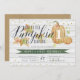 Apaixonem-se por estes convites de festas elegantes e rústicos de aniversário de criança numa paleta de cor de outono de laranja, caçador verde e castanho. "Nossa abóbora está girando uma" aparece no topo em letras de escala, com a idade de seu filho inscrita em uma abóbora laranja, sobre um fundo de escudo branco rústico. Amostra mostrada para o primeiro aniversário. Personalize com seus detalhes de festa de aniversário em letras brancas.