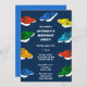 Ter uma festa de pedal no barco? Esta festa de aniversário personalizada convida ilustrações de recursos de barcos pedais em cores brilhantes contra um fundo azul marinho. Os convites estão prontos para personalizar com todos os detalhes do seu partido em letras brancas em negrito. O verso é uma cor azul brilhante coordenadora.