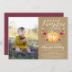 Apaixone-se por esses adoráveis convites de aniversário infantil rústicos com uma foto favorita no lado esquerdo. O design apresenta uma abóbora laranja em aquarela adornada com flores burgundy, rosa e laranja e folhagens verdes em um fundo kraft. "Nossa pequena abóbora está fazendo aniversário" aparece no topo em letras de caligrafia chic, com a idade do seu filho inscrita na abóbora. A amostra mostrada é para um primeiro aniversário. Personalize com os detalhes da sua festa de aniversário abaixo em letras brancas.