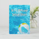 Convite de 10º aniversário de piscina com bola de praia respingando em água turquesa.