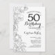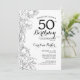 Convite de aniversário 50º Floral Branco Preto. Design minimalista moderno com desenhos botânicos em destaque e letra de script de tipografia. Simples trendy convida cartão perfeito para uma festa de na moda. Pode ser personalizado para qualquer idade. Impressos convites Zazzle ou modelo de impressão digital instantânea para download.