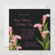 Convite Festa de Aniversário Preta com Lírio de Calla Rosa