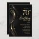 Convide seus amigos e entes queridos para o seu aniversário de 70 com este convite de aniversário preto e ouro na moda. A área de texto personalizável neste modelo de convite permite que você inclua facilmente todos os detalhes necessários para sua celebração especial de aniversário, incluindo as informações de data, hora, local e RSVP. Uma variedade de tipos de papel e estilos de canto estão disponíveis para seus convites exclusivos, juntamente com a opção de download se você preferir um formato digital.