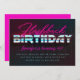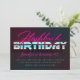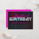 Neon "Flashback" sobre fundo do estilo 80s e cromo brilhante "Birthday" em tipo futurista. Personalize com seus detalhes na frente e atrás; adicione mais fotos e/ou texto no verso, mostrado no convite 5x7 ou transfira para o cartão postal, se desejar.