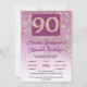 Convite Festa de aniversário Rosa de 90 brilhante Dourada