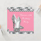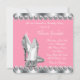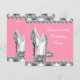 Convite de festa de aniversário rosa de mulher com sapatos de salto alto prateados e brilhantes. Este convite de festa de aniversário rosa e cinza prateado é facilmente personalizado para o seu evento.