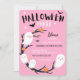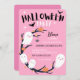 Fantasma bonito, abóboras e morcegos convidam, ideal para a festa de aniversário de Halloween de uma menina.