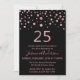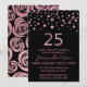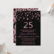 Belo Convite de aniversário de 25 de Foil Dourado e Rosa. Design de recursos do confete rosa dourado e da moenda manuscritos 25 scripts na frente e belos padrões florais do rosa no verso.