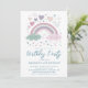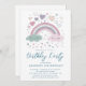 Convite Festa de aniversário Rosa e Roxo Arco-íris e Coraç