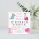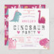 Convite Festa de Aniversário rosa moderna dinossauro fofo