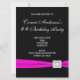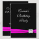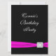 Convites de festa de aniversário preto feminino classy rosa quente fuchsia branco e preto com fita elegante e diamante. Este convite de festa cor-de-rosa quente é facilmente personalizado para a sua festa ou evento, simplesmente adicionando os detalhes do evento, estilo de fonte, tamanho e cor da fonte e texto. Por favor, note - estas são graficas impressas sem jóias reais, laços, relevos, rebaixados ou peças ou partes adicionadas.