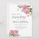 Cartão de convite de aniversário de surpresa para o tema floral russo, com ilustração aquosa de peônia rosa e verde.