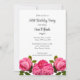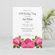 Este convite de festa de aniversário apresenta um lindo design de rosa rosa em um fundo branco. Personalize o texto com suas informações. Use este convite modelo para uma variedade de ocasiões.