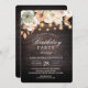 Celebre com estilo com este convite de festa de aniversário rústico e elegante, apresentando flores vintage suaves, luzes de corda quentes e um fundo de madeira escura. Perfeito para aniversários de outono, festas de marco para adultos ou encontros de jardim aconchegantes. Este design atemporal combina charme e sofisticação — ótimo para mulheres, homens ou festas conjuntas!