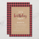 Criar seus próprios Kraft & convites de festas de aniversários rústicos do roteiro da xadrez do búfalo com estes modelos fáceis de usar projetados pelo design de Eugene.
