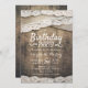 Convite de aniversário - Lace branco e tecido de burlap no fundo da madeira do velho celeiro. Um Design perfeito para o seu grande dia. Todo estilo de texto, cores, tamanhos podem ser modificados para ajustado das suas necessidades!