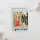 Imagem maravilhosa em art déco vintage de mulheres bonitas e cavalheiros elegantes em uma festa de cocktails nos anos 20 ou 30. Senhoras da moda com cabelos curtos em vestidos de gala elaborados, contas, lantejoulas, rendas e saias de trompete com penas, usando diamantes e pérolas finos. Homem próspero em smoking, gravata branca e fraque, fumando um charuto. Barman preparando uma rodada de martinis enquanto o burburinho da festa o cerca no bar. Mostrada aqui para uma celebração de 40 anos de casamento, este convite de festa encantador pode ser personalizado para qualquer ocasião especial simplesmente personalizando as informações no verso. Arte retrô de dias passados - a Era Flapper do Jazz e dos Nightclubs.