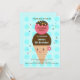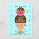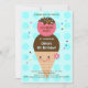Este convite bonito é ideal para celebrar uma festa de sorvete. Ele apresenta um personagem de cone de sorvete com duas colheres de sorvete com fudge e borrifos. O plano de fundo tem um padrão bolinhas. design de capa para uma garota divertida e enérgica.