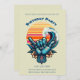 Prepare-se para pegar a onda do verão com este convite de festa de aniversário! Com um pôr do sol retrô com o icônico gesto de surf havaiano e uma grande onda, este convite exala as vibrações descontraídas de um paraíso tropical.