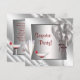 Convite elegante de festa de aniversário surpresa de cocktails e balões prateados e vermelhos. Este convite de festa de aniversário surpresa vermelho é facilmente personalizado para o seu evento, adicionando detalhes do evento, estilo de letra, tamanho e cor da fonte e texto.