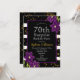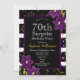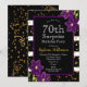 Festa de Aniversário Surpresa de 70 anos | Design de Brilho Preto e Dourado com Detalhe Floral Roxo. Este é um modelo pronto para você adicionar os detalhes da sua festa.