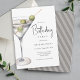 Hospedar um adulto memorável só festa de aniversário com um tema de cocktail martini. Seja em uma sala de terraços, seu bar favorito, um restaurante elegante, ou uma reunião mais íntima de casa, este tema certamente fará para uma noite cheia de diversão. Este design de convite tem um copo de martini cheio com três azeitonas em salmoura pintadas em aquarelas sutis para um fascínio sofisticado e simples. Personalize o modelo de texto fácil de usar com as informações da sua festa e você está pronto. Este convite está disponível tanto em convites impressos para envio de correio como em download digital sem papel para envio eletrônico aos seus convidados.