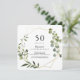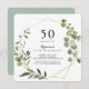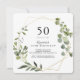 Este convite de aniversário verde-tropical de ouro geométrico da 50ª é perfeito para uma simples festa de aniversário. A design apresenta lindas folhas verdes pintadas à mão, enfeitando um quadro geométrico dourado.
