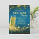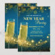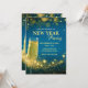 Convite de Ano Novo Elegante em Dourado e Azul - Design Personalizado com Champanhe e Brilho