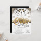 Convite Festa de Ano Novo, Brindes, Dourado, Elegante