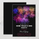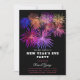 Um convite de Ano Novo moderno e elegante com fogos de artifício coloridos em um fundo preto. Este cartão de convite colorido captura o espírito da véspera de Ano Novo. Perfeito para convidar amigos e entes queridos para celebrar a passagem do ano.