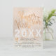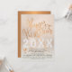 Cartão de convite para jogos de festas de véspera de Ano Novo, com uma tenda escrita de tipografia em cobre metálica, com letra de "Feliz ano novo", e diamantes brancos sobre um fundo de película brilhante de ouro brilhante e rosa. +++++++++ Personalize-o com o ano e seus detalhes do partido! ++++++++ Adequado para eventos pessoais da família e empresariais.